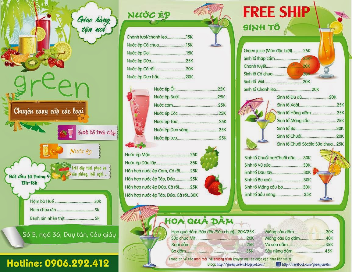 Vẫn với tôn chỉ duy nhất là chỉ phục vụ các sản phẩm Hoa quả dầm - Sinh tố - Nước ép trái cây từ 100% trái cây tươi nguyên chất VN, kết hợp sữa đặc, sữa chua, sữa tươi không đường, dầu dừa. Green luôn cam kết không sử dụng hoa quả TQ, không sử dụng siro, hóa chất, phẩm màu độc hại...nhằm đem đến cho Quý Khách hàng những sản phẩm tươi ngon, bổ dưỡng, đảm bảo sức khỏe và giá cả cực kỳ phải chăng nhé!